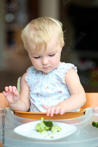 adorable, attractive, baby, bite, blond, broccoli, caucasian, chair, children, cooked, cute, delicious, diet, dress, eat, eat, food, fresh, funny, girl, green, hair, hand, health, healthy, holding, home, ravenous, indoor, infant, introducing, children, little, meal, mouth, nourishment, raw, sitting, small, solid, steamed, sweet, tasty, toddler, vegetable, vegetarian, vitamin, young