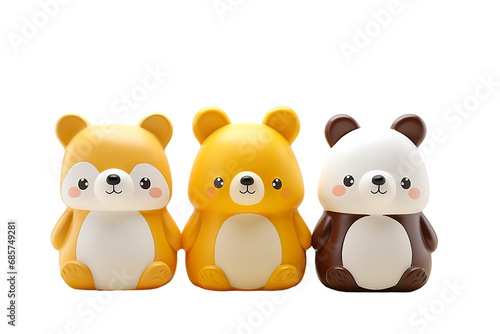 cute toys with Christmas theme, photo, studio lighting, white background, 3 abstract animals cartoon PNG