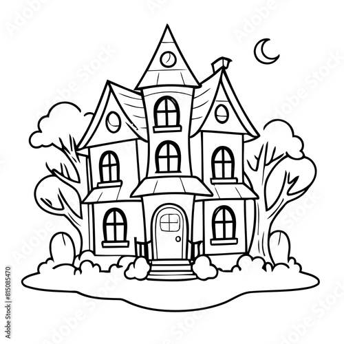 Cute vector illustration HauntedHouse for kids coloring activity page