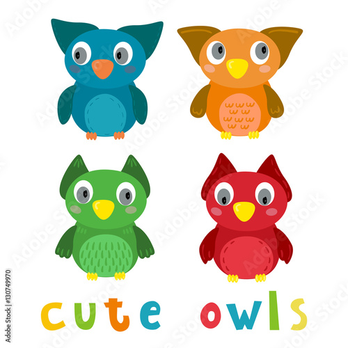 Cute Vector owls in cartoon style. vector print