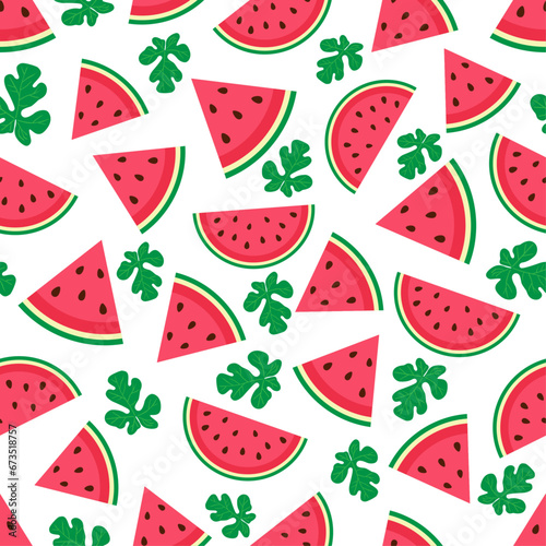 Cute vector seamless pattern from slices of watermelon. delicious print, packaging, fabric, surface design. wallpaper, fabric, decoration, wrapping paper.