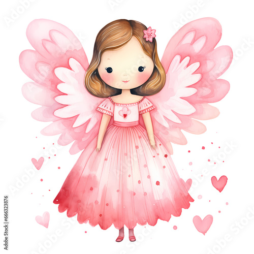 Cute Watercolor Angel Valentine Day Clipart Illustration