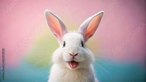 rabbit, cute, pet, white, smiling, laughing, fur, ear, easter, spring, background, happiness, copy space, adorable, cheerful, furry, domestic, portraiture, photo, easter bunny, animal portrait, high-quality, whimsical