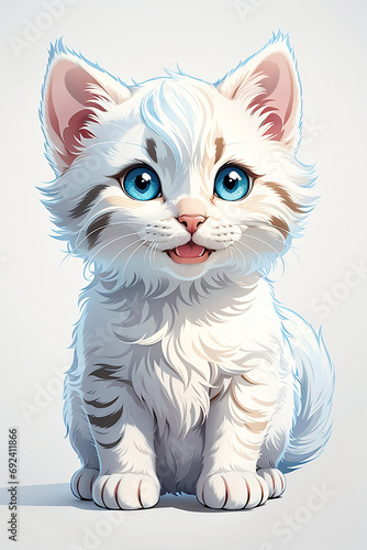 Cute White Kitten with Blue Eyes Illustration