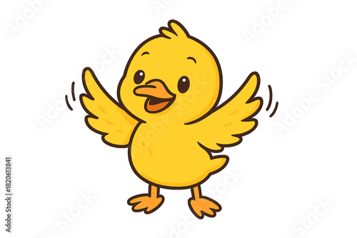 chick, baby, yellow, cute, standing, wing, happy, open, wide, face, wide open, adorable, cheerful, bird, animal, easter, spring, poultry, farm animal, mascot, greeting, welcome, isolated