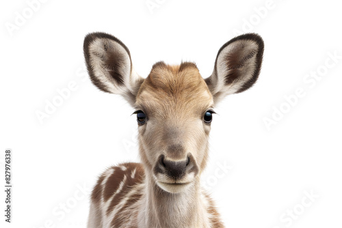 Cute young deer looking at camera. Head close-up portrait of deer. White Isolated background. Generative AI