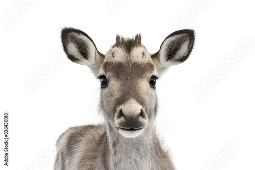 Cute young deer looking at camera. Head close-up portrait of deer. White Isolated background. Generative AI