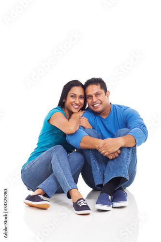 cute young indian couple sitting on the floor