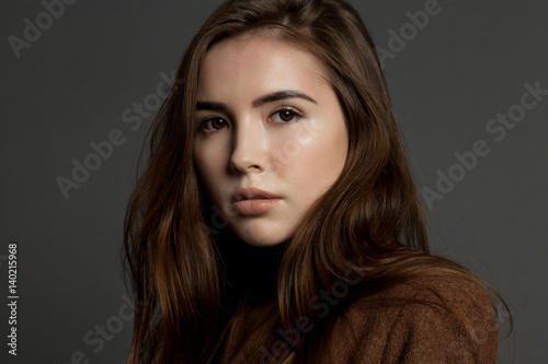 woman, portrait, model, naked, studio, young, attractive, female, fashion, girl, care, face, skincare, facial, clothes, expression, brown, adult, casual attire, cosmetic, people, caucasian, grey, wavy, cute, elegant, dress, lady, eyebrow, lip, up, wind, colours, person, long, make-up, beauty, hair, real, skin, looking, style, beautiful, background, brunette, pretty, happy