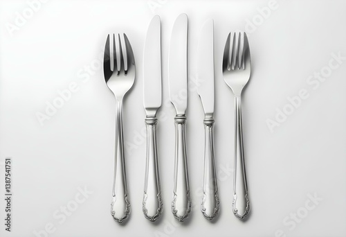 cutlery, fork, isolated, knife, white, background, utensil, silver, metal, set, silverware, dinner, food, dining, crockery, eatery, equipment, flatware, steel, stainless, shiny, kitchen, breakfast, table, closeup, tableware, object, top, view