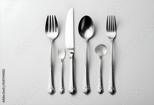 cutlery, fork, isolated, knife, white, background, utensil, silver, metal, set, spoon, silverware, dinner, food, dining, crockery, eatery, equipment, flatware, steel, stainless, shiny, kitchen, breakfast, table, closeup, tableware, object, top, view