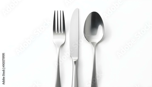 Cutlery set with Fork, Knife and Spoon isolated on white background