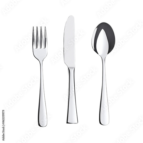Cutlery set with Fork, Knife and Spoon [Transparent Background PNG].