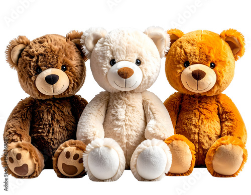 cutout set of 3 stuffed animal toys isolated on transparent background.