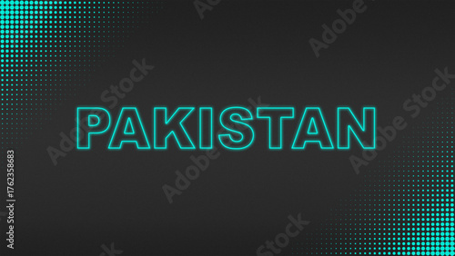 Cyan Neon Pakistan Text Futuristic Digital Halftone Typography
