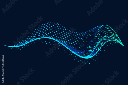 cybernetic, blue, wave, surface, made, of, digital, particle, and, light, trail, tech, technology, futuristic, modern, design, illustration, vector, graphic, wallpaper, cyberspace, communication, datum, information, big, social, media, global, earth, map, planet, earth, plexus, dot, line