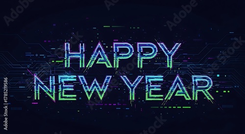 happy new year, futuristic, technology, cybernetic, greeting, happy, new, year, cyber, digital, design, celebration, message, wish, neon, glowing, light, graphic, illuminated, vibrant, modern, innovation, progress, future, bright, virtual, electronic, abstract, style, pattern, background, creative, illustration, vision, optimistic, cheerful, joy, festive, holiday, event, beginning, renewal, hope