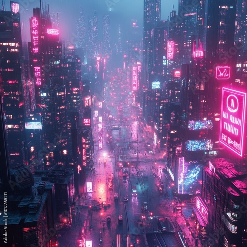 city, neon, light, rain, night, futuristic, city landscape, urban, architecture, skyline, street, building, glow, dark, atmosphere, scenery, digital artwork, graphic design, illustration, science fiction, technology, future, fantasy, modern, style, abstract