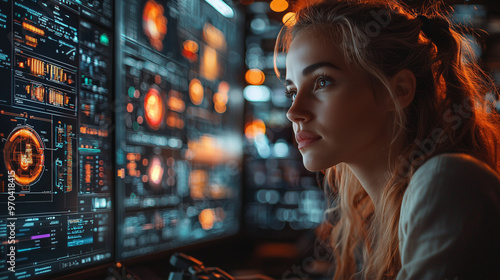 hacker, woman, datum, digital, technology, futuristic, screen, display, interface, cyber, code, network, information, programming, monitor, coding, tech, innovation, future, science fiction, science fiction, mystery, intrigue, sharpened, concentration, digital artwork, aesthetic