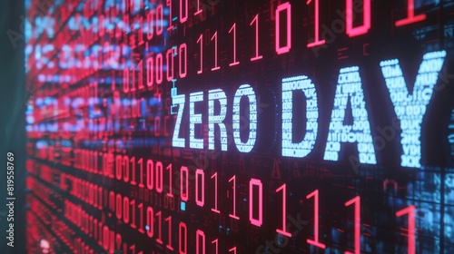 Cyberpunk Matrix Background with Bold "ZERO DAY" Text in 3D - Futuristic Design with Binary Numbers Flowing