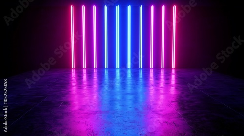 Cyberpunk Style Product Display Stage with Blue and Purple Neon Glow Reflecting on Ground.Generative AI 地面に反射する青と紫のネオングローのあるサイバーパンクスタイルの製品展示ステージ
