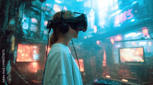 girl, headset, technology, future, digital, gaming, virtual, reality, life events, neon, light, screen, science, fiction, arcade, game, player, woman, female, avatar, innovation, computer, screen, interface, network, online, cyber, space, earth, electronic, contraption, device, modern, tech, stylish, futuristic