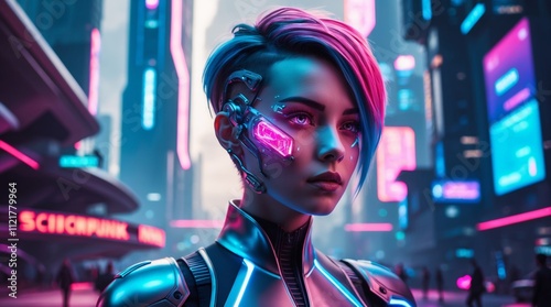 neon, futuristic, city landscape, technology, warrior, cybernetic, science fiction, metropolis, urban, light, visor, glowing, digital, holographic, advanced, street, innovation, vibrant, electric, nightlife, edgy, robotic, high technology, sleek, energy, chrome, artificial intelligence, circuitry, synthetic