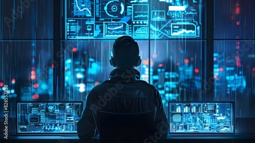 Cybersecurity Expert Monitoring Advanced Digital Security System in High Tech Environment