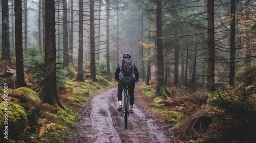 effort, exercising, exploration, fog, horizontal, journey, lifestyle, male, one person, photo, solitude, sunbeam, vitality, color image, copy space, cycling, endurance, hobby, people, riding, sport, sunlight, britain, timberland, bicyclist, headwear, healthy lifestyle, morning, real people, adult, adventure, bicycle, dirt road, footpath, full-length, nature, outdoors, backview, recreational pursuit, rural scene, sunny, tranquil scene, adults only, bracken, forest