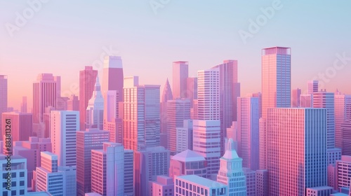 D cityscape filled with pastel skyscrapers at dusk AI generated illustration