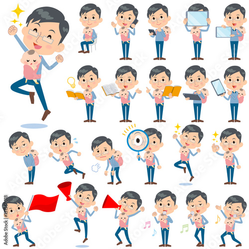 father, man, child rearing, baby, embrace, piggyback, babysitting, family, smile, seated, chair, smartphone, tablet, privacy, communicate, presentation, announcement, book, study, acquaintance, bow, japan, greeting, run, fast, rush, drop, sigh, fatigue, magnifying glass, discovery, magnifying, jump, rejoice, ok, approval, cheer, megaphone, song, music, karaoke, dance, character, set, illustration