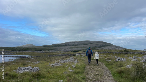 cloud, cold, father, daughter, family, father, grass, green, hiking, ireland, mountain, nature, offroad, sky, trip, walking, weather
