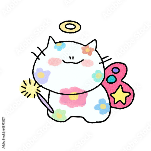 Da-Da sticker cute white flower kitty cat with butterfly wings