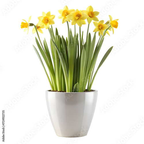 Daffodils in White Pot Spring Flowers on Transparent Background pot