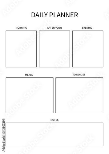 Daily planner for diary, organiser, notebook. Printable A4 planner. Vector Illustration.