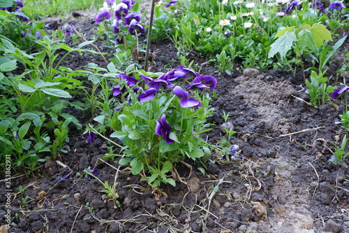Daisies, violets: pansies flowers. A bed of flowers. Flowers are different. Beautiful plant