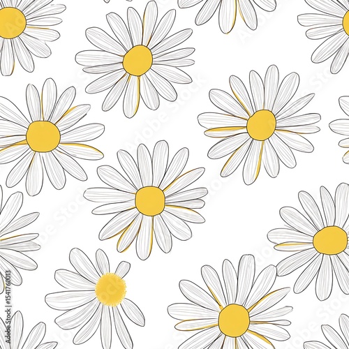 Daisy Pattern Simple Line Art, Flower Seamless Pattern