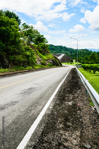 background, blue, construction, dam, forest, green, hill, landscape, line, mountain, natural, nature, power, river, road, rock, sky, summer, siam, travel, tree, tropical, wall, water