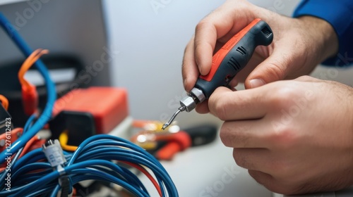 damaged, cable, repaired, technician, clean, modern, office, technical, expertise, precision, cable, restoration, repair, guide, work, soldering, iron