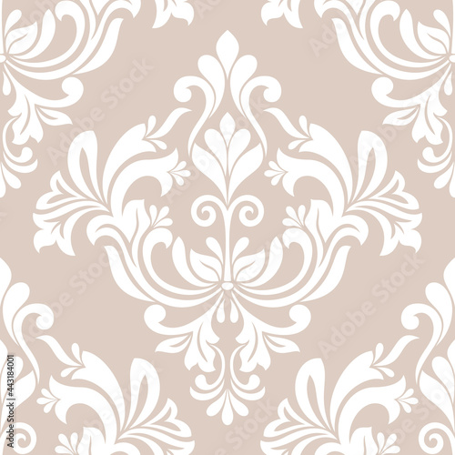 Damask seamless vector background. baroque style pattern. Beige and white floral element. Graphic ornate pattern for wallpaper, fabric, packaging, wrapping. Damask flower ornament.
