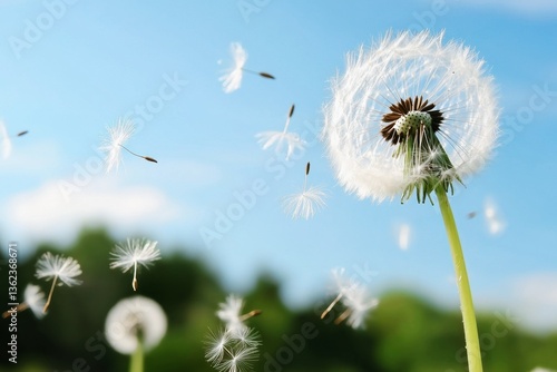 blowball, seed, blowing, wind, nature, plant, spore, sky, blue, green, field, flower, delicate, airy, softness, freedom, growth, bloom, natural, beauty, peaceful, gentle, outdoors, botanical, summer, light, wildflower, countryside, harmony, landscape, floral, blossom, seed, flying, blowball, blow