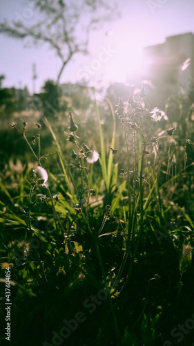 Dandelions and other weed grass in the evening sun