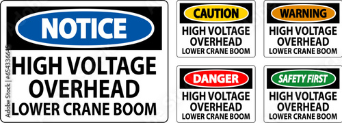 Danger Sign High Voltage Overhead, Lower Crane Boom