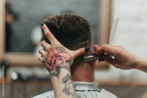 client, work, fashion, shear, stylish, specialist, job, shop, harsh, background, young, occupation, trendy, design, scissors, salon, tied-up, man, swag, style, coiffure, hair, cut, barber, striped, male, treatment, client, barbershop, white, cropped, brutal, care, expert, moustache, modern, professional, closeup, hairdresser, posh, masculinity, hand, haircut, beard, beauty, guy, hipster