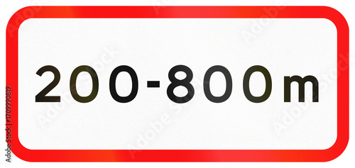 Danish additional road sign panel - 200 to 800 meters