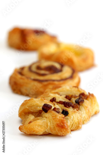 apple, cinnamon, custard, danish, food, fruit, pastry, pastry, raisin, small, three