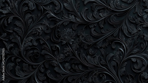 dark, floral, pattern, background, texture, black, design, three-dimensional, embossed, repeating, vintage, ornate, elegant, abstract, decorative, intricate, surface, motif, wall, art, style, graphic, image, illustration, digital, print, textile, fabric, wallpaper, brocade, damask, floral pattern, dark background, intricate pattern