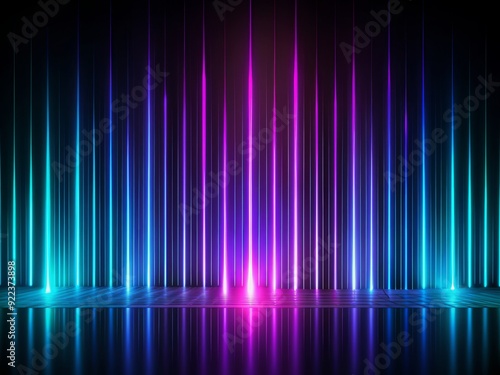 Dark abstract background with sleek vertical stripes, illuminated by a black light, creating a mesmerizing neon glow effect perfect for futuristic or avant-garde designs.