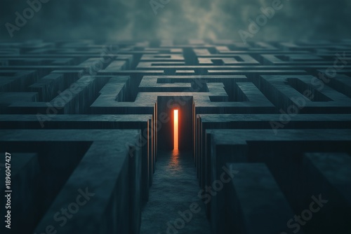 labyrinth, labyrinth, solution, exit, light, opportunity, challenge, puzzle, problem, path, abstract, concept, strategy, journey, way, future, success, difficulty, hope, mystery, glowing, orange, dark, complex, intricate, finding, freedom, choice, progress, goal, business, metaphor, thinking, mind, idea, direction, quest, decision, search, illumination