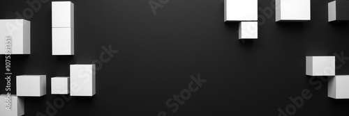 Dark background with carefully arranged geometric blocks in black and white, creating a sense of order and structure, minimalist design, urban landscape